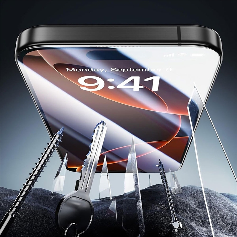 این محافظ از شیشه حرارتدیده با کیفیت بالا ساخته شده و مقاومت آن در برابر ضربات تا ۱۱۰ پوند آزمایش شده است. این ویژگی، صفحه نمایش آیفون شما را در برابر سقوط، ضربات و خط و خشهای احتمالی ایمن میکند.