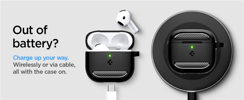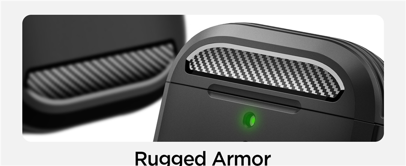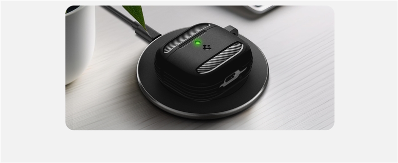 با طراحی دقیق و برشهای مناسب، کاور Rugged Armor امکان دسترسی آسان به دکمه جفتسازی، نمایشگر سطح باتری و شارژ بیسیم را بدون نیاز به برداشتن کاور فراهم میکند.