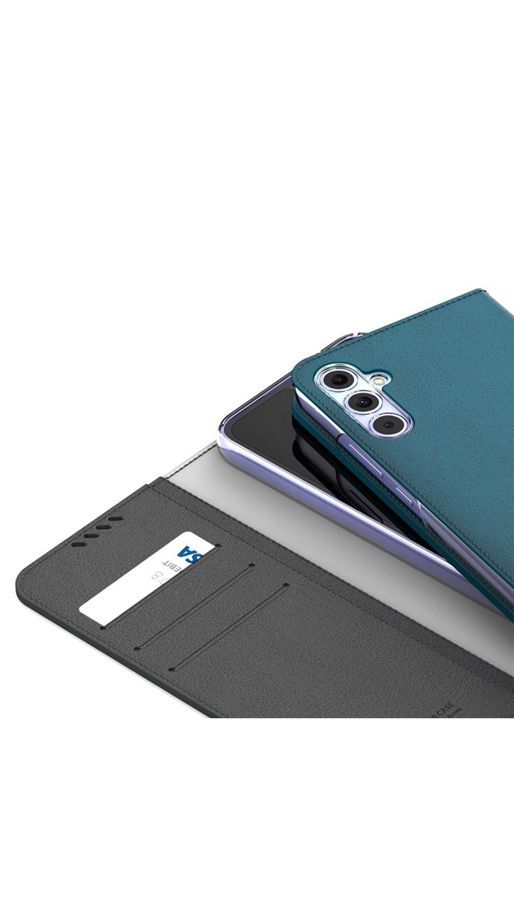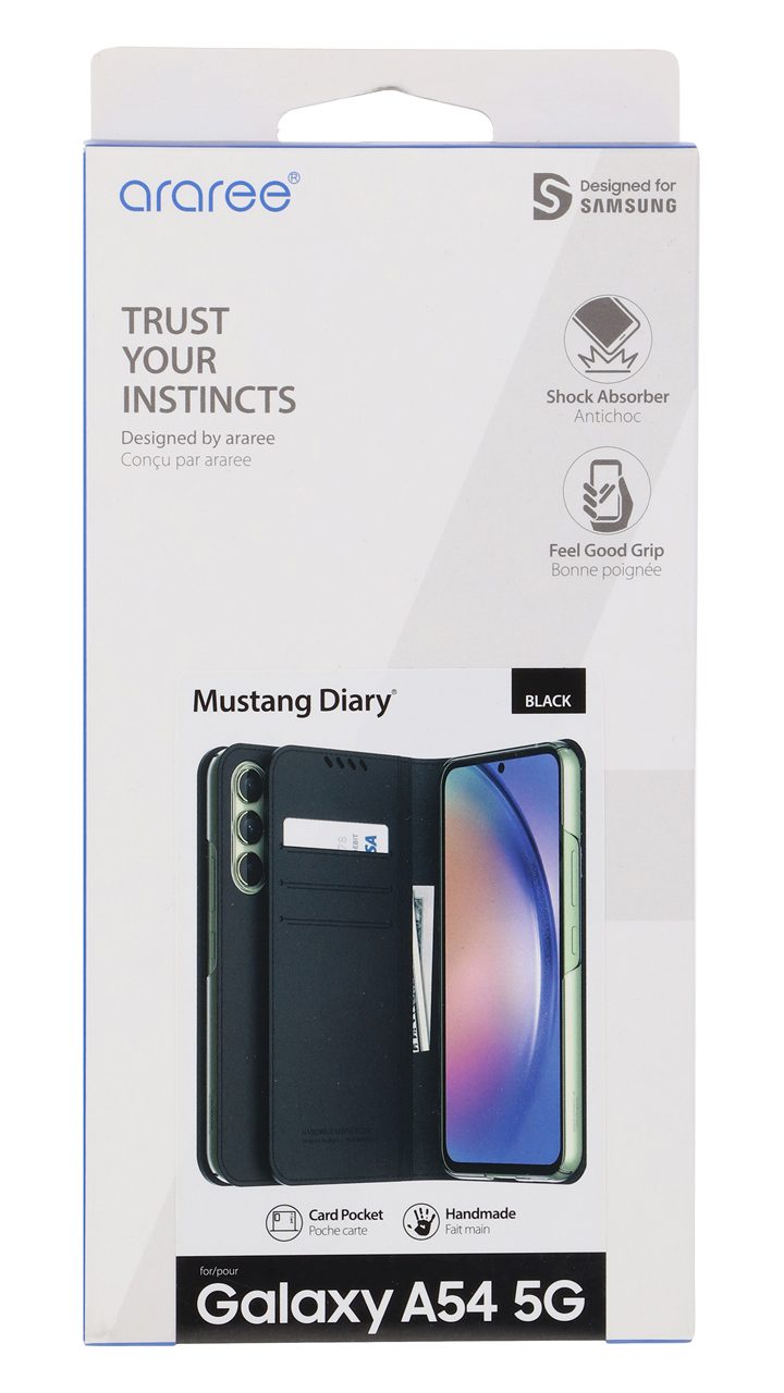 کیف گوشی آراری Mustang Diary در بخش داخلی خود جیب های مناسبی برای قرار دادن کارت و اسکناس دارد که می توانید به راحتی از آن استفاده کنید. موادی با پایه پلی کربنات بسیار سخت برای تولید این قاب به کار رفته که استحکام و مقاومت بالایی به آن می بخشد تا قابلیت محافظت از کناره های گوشی همراه را داشته باشد.