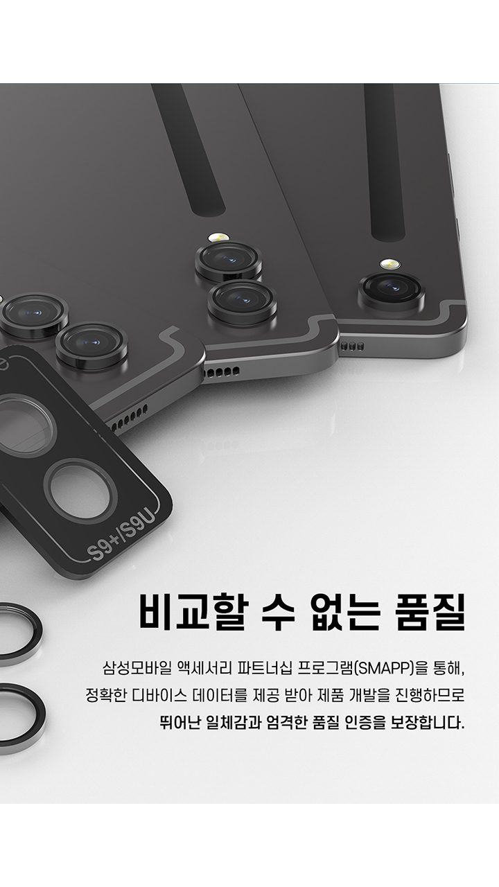 کاور محافظ لنز دوربین تبلت Samsung Galaxy Tab S9 از شیشه سکوریت شده ای ساخته شده است که در فریم (قاب) آلومینیومی قرار می گیرد. قاب آلومینیومی سبب می شود که نیازی به چسباندن محافظ روی لنز دوربین وجود نداشته باشد. به همین دلیل با گذشت زمان و خراب شدن کاور محافظ لنز، امکان تعویض آن بدون آسیب رسیدن به دوربین تبلت وجود دارد.