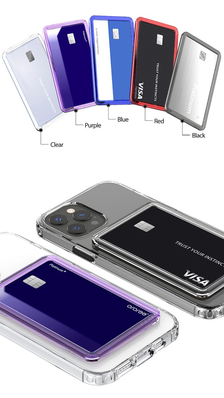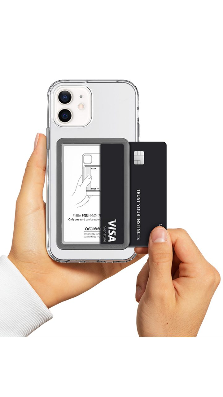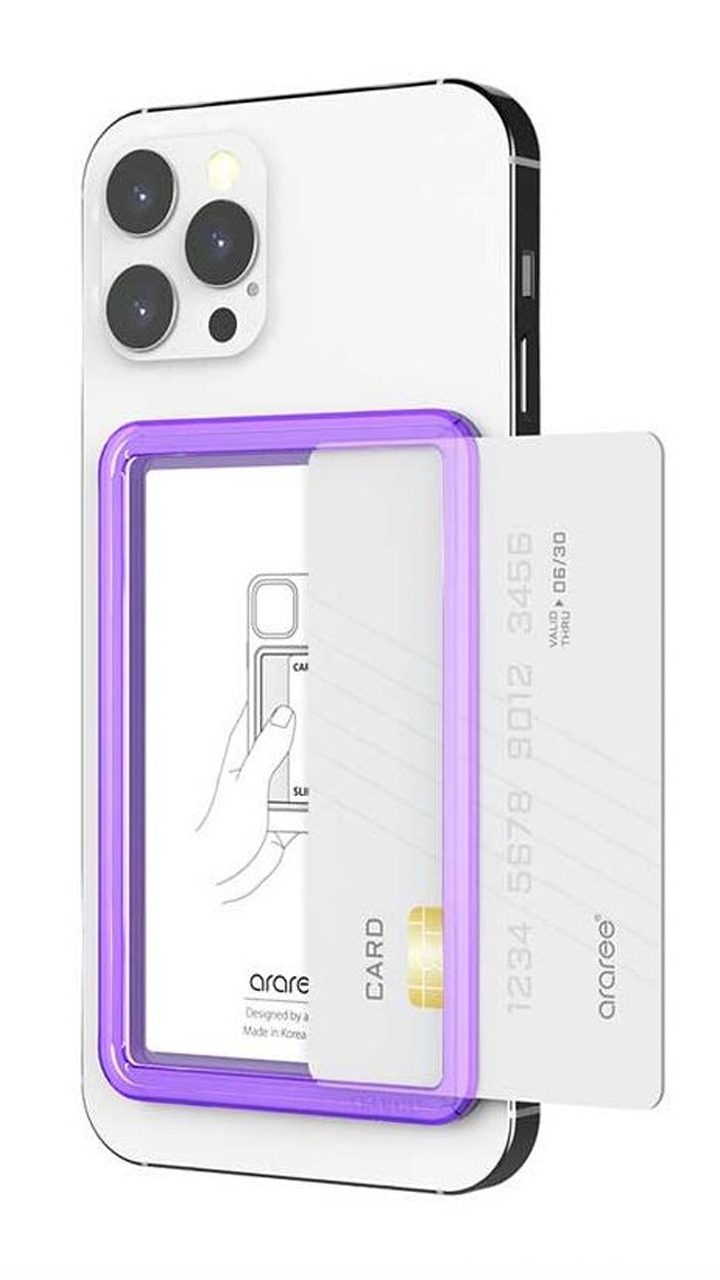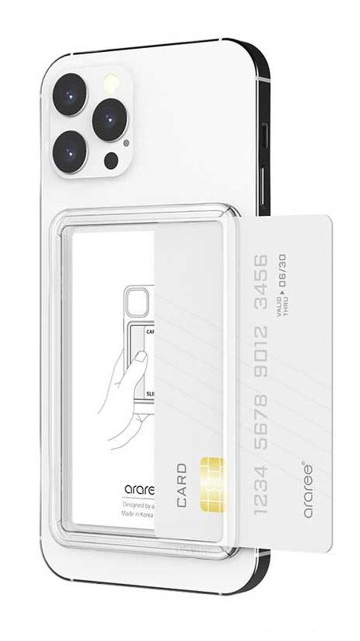 جاکارتی Frame Slot آراری، به رنگ شفاف و با ابعاد جمع و جور و سبک طراحی شده که به آسانی به پشت گوشی شما می چسبد، بدون اینکه حجم یا وزن آن را افزایش دهد. در قسمت جانبی این جاکارتی یک شیار وجود دارد که امکان ورود و خروج کارت را فراهم می کند.