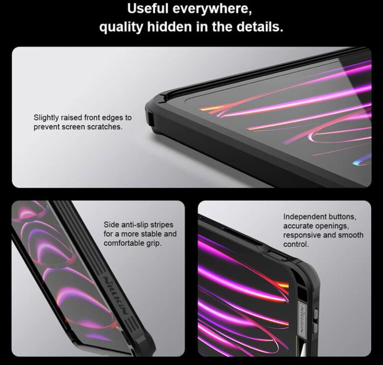 شما در حال مشاهده یکی از جدید ترین و کاربردی ترین محصولات نیلکین هستید! محصولی که یکی از بهترین گزینه ها برای انتخاب است. قطعا هیچ یک از ما بدون ترس آسیب دیدن iPad مان نمیتوانیم از آن استفاده کنیم. همیشه نگرانیم که شاید با کوچک ترین سهل انگاری خط و خشی روی بدنه آن بیافتد. ضمن اینکه به دلیل سایز بزرگی که آیپد ها دارند معمولا در دست داشتن آن سخت است و همین امر کار با آن را سخت تر میکند. کاور نیلکین مدل Camshield Pad Magnetic توسط شرکت نام آشنای نیلکین تولید شده است تا پاسخگوی این دسته از نیاز ها باشد. این کاور به صورت هم زمان میتواند ضمن محافظتی عالی از بدنه و بخصوص لنز آیپد شما، آن را روی پایه استواری که در پشت آن طراحی شده است به صورت استند نگه دارد و همچنین دارای محفظه نگهدارنده قلم نیز هست که بتوانید در هرکجا قلم را کنار آیپد خود حمل کنید. جنس بدنه این کاور از PC پلی کربنات و کناره ها از TPU است . PC پوششی سخت را برای شما به ارمغان می آورد که در برابر سخت ترین ضربات میتواند محافظت ویژه ای بجا بیاورد و لبه های TPU فشار ضربات از گوشه ها را به خوبی دفع میکند. ضمن اینکه اجازه میدهد به راحتی آیپد خود را داخل یا خارج کاور کنید. در قسمت پشتی این کاور یک استند آهن ربایی بزرگ قابل مشاهده است که ضمن فراهم ساختن خواص مگنتی و استفاده از تکنولوژی MagSafe، به صورت استندی محکم و قابل تنظیم در زوایای مختلف قرار میگیرد و بدون لغزش میتوانید آیپد را به آن تکیه داده و به کار های روزمره خود مانند مطالعه، طراحی و نقاشی، مشاهده فیلم و.. بپردازید. آهن ربای پشت کاور نیلکین مدل Camshield Pad Magnetic آنقدری قوی هست ک بتوانید آنرا با آسودگی به پایه های نگهدارنده تبلت مگنتی بچسبانید و حتی در هنگام رانندگی در خودرو آنرا همراه داشته باشید. برش های این کاور بسیار دقیق و متناسب با آیپد ها انجام شده است و هیچ مشکلی در استفاده از درگاه ها و یا خروجی اسپیکر آیپد خود نخواهید داشت. لنز دوربین آیپد شما به صورت ویژه ای توسط یک پوشش کشویی محافظت میشود، کافیست در زمان هایی که به آن نیازی ندارید پوشش را به صورت کشویی ببندید و آن نیز به خوبی چفت خواهد شد. در قسمت جلویی برشی دقیق برای استفاده از قلم مخصوص آیپد را مشاهده میکنید که تکمیل کننده تمامی ویژگی های این کاور فوق العاده از برند نیلکین است.