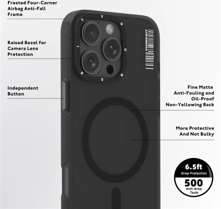 برند یانگکیت ، برندی که در مدت زمان کوتاهی توانسته در دل آیفون داران جا باز کند! قابهای YOUNGKIT بواسطه طراحی جدید و بسته بندی خاص خود در شبکه های اجتماعی ترند شدند و بازار خوبی برای خود بوجود آوردند. بسته بندی قاب های یانگ کیت شدیدا برای هدیه دادن مناسب هستند و قطعا طراحی چشم نواز آن ها ، عزیزانتان را شگفت زده میکند. قابها از پلاستیک بسیار نرم و باکیفیت تشکیل شده اند. دکمه های نرم و روان و برش های لیزری دقیق جزو مزایای دیگر این سری قابهای برند یانگ کیت میباشد. اصلی ترین دلیل تفاوت قاب های یانگ کیت ، طراحی متفاوت و خاص آن هاست ؛ طراحی که شاید در دست هر آیفون داری نبینید!! همین امر باعث میشود تا داشتن این قاب شما را از آیفون داران دیگر متمایز کند. ضربه گیری خوب و طراحی مهندسی شده و حرفه ای از مزایای دیگر قاب یانگ کیت هستند. در داخل قاب طراحی بصورت شیار شیار انجام شده تا هوا به سادگی رد و بدل شود و از داغ شدن دستگاه جلوگیری کند. متریال استاندارد این قاب موجب شده تا هیچگونه اختلالی در آنتن دهی بوجود نیاید و با خیال راحت میتوانید از این قاب استفاده کنید. بصورت کلی اگر بدنبال یک قاب حرفه ای ، با کیفیت و طراحی خاص هستید قطعا قاب های یانگ کیت را به شما توصیه میکنیم.