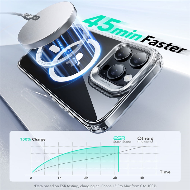 این قاب دارای آهنرباهای داخلی قدرتمند است که اتصال ایمن و شارژ سریعتری را برای شارژرهای بیسیم MagSafe و سایر لوازم جانبی فراهم میکند.