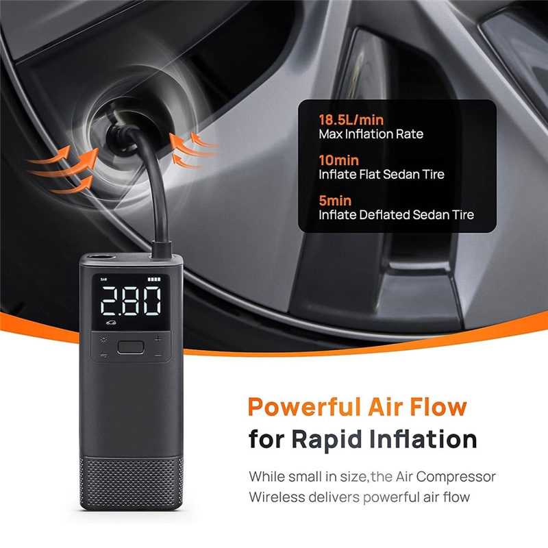 کمپرسور باد شارژی 70Mai TP05 کاملاً نیازهای مختلف روزانه شما را برآورده می کند. این پمپ باد می تواند یک لاستیک سدان خالی را در حدود 10 دقیقه باد کند، همچنین یک لاستیک سدان نیمه خالی را تنها در 5 دقیقه باد می کند (سایز لاستیک سدان معمولی 195/70R14 است.)
