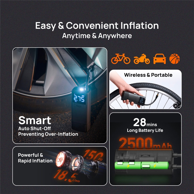 باد کردن بعضی وسایل مثل لاستیک ماشین، توپ والیبال، لاستیک دوچرخه و... امری زمان بر است و علاوه بر آن، بسیاری از آن‌ها دارای فشار هوای مخصوص هستند که باید طبق آن شارژ شوند. کمپانی شیائومی با تولید کمپرسور باد Xiaomi 70Mai TP05 به خوبی این مشکل را حل کرده و علاوه بر اینکه می توانید با میزان فشار دقیقی باد لاستیک خود را تنظیم کنید، این کار را در مدت زمان کمتری انجام خواهید داد.