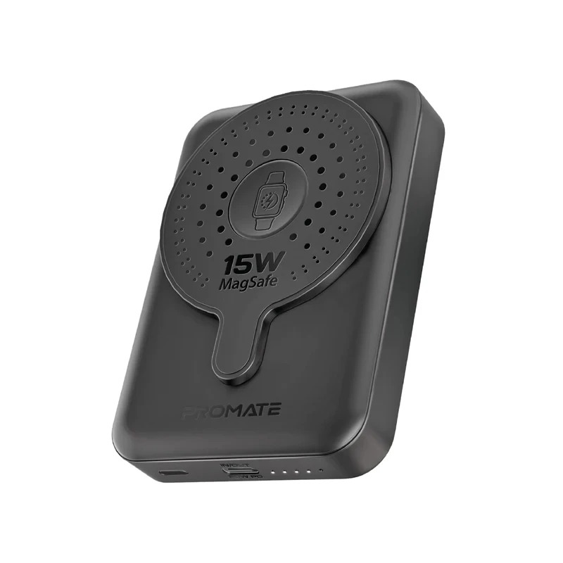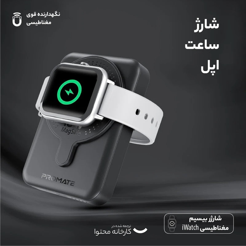 شارژر بی سیم پرومیت مدل POWERMAG-DUO.BLACK با باتری داخلی 10000 میلی آمپر ساعت با PowerMag-Duo شارژ بیسیم آیفون و اپل واچ خود را در بالاترین سرعت انجام دهید. این دستگاه دارای یک ماژول شارژ بیسیم 15 وات با پشتیبانی از فناوری MagSafe است که به طور کامل با آیفونهای شما سازگاری دارد و برای شارژ سریع و ایمن مناسب است. در این محصول، صفحه شارژ مغناطیسی اپل واچ قرار داده شده که با اپل واچ شما به طور کامل هماهنگ میشود و دستگاههای شما را در حالت حرکت با توان ایدهآل 3 وات شارژ میکند. پورتهای USB-C با توان خروجی 20 وات و پشتیبانی از فناوری Power Delivery به شما کمک میکنند، دستگاههای USB-C خود را تا 4 برابر سریعتر شارژ کنید. طراحی قابل حمل و سبک وزن PowerMag-Duo به شما این امکان را میدهد که دستگاه خود را در هر مکانی شارژ کنید. مشخصات محصول: - طراحی سبک و قابل حمل برای قرارگیری راحت در جیب کاربران/ ابعاد جیبی/ 50 درصد کوچکتر از پاوربانکهایی به همین ظرفیت/ دارای استند تاشو متصل به محصول - باتری داخلی لیتیوم پولیمر به ظرفیت 10000 میلیآمپرساعت - ارائه توان خروجی 20 وات از پورت USB-C با فناوری Power Delivery - امکان شارژ بیسیم آیفون، اپل واچ و شارژ با خروجی USB-C - شارژ بیسیم 15 وات با فناوری MagSafe برای شارژ سریع و اتصال ایمن - پشتیبانی پد شارژ بیسیم از شارژ اپل واچ با توان خروجی 3 وات - دارای سیستم اختصاصی ایمنی برای جلوگیری از افزایش دما، جریان اضافی و محافظت در برابر اتصال کوتاه