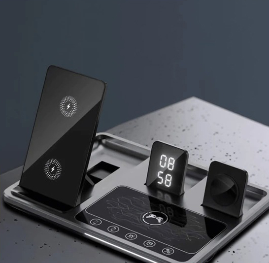 شارژ بی سیم طراحی نوآورانه ایمنی داخلی بالابر خودکار با یک لمس سه دستگاه را همزمان شارژ کنید شارژ سریع ساعت دیجیتال