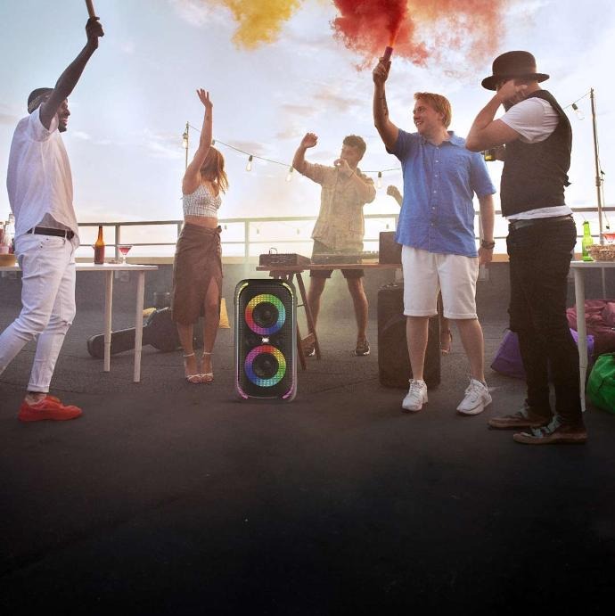 با توان خروجی 640 وات، این اسپیکر صدای بسیار قدرتمند و با کیفیتی را تولید میکند که برای پوشش دادن فضاهای بزرگ و ایجاد جوی پرانرژی در مهمانیها مناسب است.