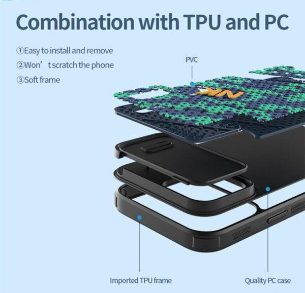 طراحی شکیل و منحصر به فرد این محصول و امکان پوشش 360 درجه ای در تمامی قسمت های گوشی، خیال کاربر را از بابت حفاظت و اندازهی دقیق آن راحت میکند.،در زیر درب کشویی قاب، فنری قرار داده شده است که باعث راحت تر باز و بسته شدن درب کشویی میشود که از طول عمر بسیار بالایی برخوردار است.،جنس مرغوب این قاب ضد ضربه بوده و در برابر چربی و اثر انگشت و گرد و غبار مقاوم است. در قاب نیلکین مدل استریکر اِس آیفون 14 پرو مکس از مواد سیلسکون نرم و پلاستیک سخت ( TPU و PC ) که سازگار با محیط زیست و غیر سمی است به کار رفته که برای مقاوم بودن در برابر خط و خش ، ضربه و شوک مناسب میباشد.