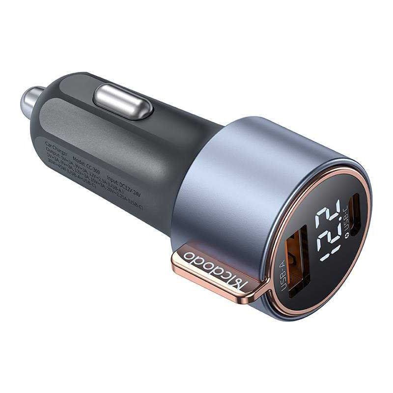 شارژر فندکى 75وات مک دودو مدل CC-3690 ساخته شده از آلیاژ آلومینیم و مواد PC+ABS علاوه بر ظاهر شکیل دارای استحکام مناسبی میباشد.این فندکی دارای دو خروجی USB و تایپ سی با توان خروجی مجموع 75 وات است که سهم تایپ سی 45 وات و USB توان 30 وات را پشتیبانی میکند.این فندکی از پروتکل های شارژ سریع PD3.0/ PPS/ QC4+/ QC3.0/ AFC/ FCP/ SCP/ SFC2.0/ BC1.2/Samsung/Apple 2.4A انواع موبایل و تبلت (بسته به قابلیت دستگاه و کابل مورد استفاده) پشتیبانی می نماید.این شارژر فندکی دارای نمایشگر ولتاژ میباشد که سهولت کار در تاریکی خودرو را نیز فراهم میکند.از شارژر فندکى 75وات مک دودو در انواع خودرو سواری و کامیون و اتوبوس می توان استفاده نمود.ساپورت ولتاژ ورودی DC 12V-24V از ویژگی های این فندکی است.