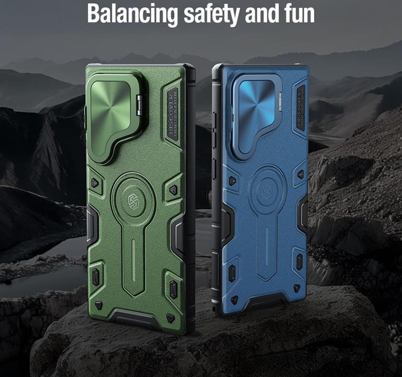 گوشی موبایل Samsung Galaxy S25 Ultra جدید ترین محصول کمپانی سامسونگ و یکی از مهم ترین گوشی های سال است! اولین چیزی که در ذهن دارنگان این هیولای تکنولوژی جلوه میکند این است که چگونه میتوانند محافظتی حداکثری را از گوشی ارزشمند خود به عمل آورند تا در کنار حفظ زیبایی و کارایی، کوچک ترین خطری گوشی آن هارا تهدید نکند و مهم تر از همه اینکه بتوانند در هر محیطی که دوست داشته باشند، شهر، جنگل یا حتی کوه بدون هیچ نگرانی گوشی خود را کنار خود داشته باشند و از قابلیت های فوق العاده آن استفاده کنند.نیلکینCamShield Armor Prop همان گزینه ای است که برای یک محافظت حداکثری به آن نیاز دارید. فرقی نمیکند برای چه فعالیتی و در چه محیطی گوشی همراه خود را نیاز دارید این کاور به هیچ وجه شمارا ناامید نخواهد کرد. طراحی ویژه و جذاب آن امکان استفاده را برای تمامی سنین و سلیقه ها، پیر یا جوان، خانم یا آقا فراهم کرده است. جنس بدنه این کاور مستحکم از متریال Hard PC پلی کربنات سخت در قسمت پشتی و Soft TPU در قسمت کناره ها ساخته شده است. این ساختار محافظت فوق العاده ای را برای گوشی همراه شما تضمین میکند، در اثر برخورد یا سقوط کوچک ترین خط و خشی روی بدنه گوشی همراه شما ایجاد نخواهد شد و هیچ کثیفی و یا لک و اثر انگشتی پشت آن باقی نمیماند. نکته حائز اهمیت طراحی 4 گوشه این کاور است که با توجه به امکان ورود ضربه و یا سقوط از گوشه ها، به شکلی برآمده و بامپر مانند در آمده تا احتمال آسیب دیدگی را به 0% برساند. TPU نرم بکار رفته در دور کاور به ورود و خروج آسان گوشی همراه در کاور کمک میکند و همچنین محافظتی عالی از دور تا دور بدنه به عمل می آورد. تمامی قسمت ها به خصوص دکمه و درگاه ها نیز تحت پوششند. به شکلی استاندارد و دقیق برش خرده و برآمدگی لبه ها از تماس مستقیم صفحه نمایش با سطوح صاف جلوگیری میکند و اختلالی برای نصب گلس و محافظ صفحه ایجاد نمیکند.ویژه ترین قسمت کاور محافظ لنز فلزی قرار داده شده در پشت آن است که به شکل پنجره ای باز و بسته میشود و چندین کاربرد اساسی دارد.کاربرد اول آن محافظتی ویژه از آسیب پذیر ترین قسمت گوشی موبایل یعنی لنز دوربین است، کاربرد دوم استفاده به صورت یک استند و قرار گیری در زاویه دلخواه است به شکلی کاملا مطمئن و دقیق. به صورت مگنتی چفت میشود و در صورت تکان های شدید نیز باز نخواهد شد.