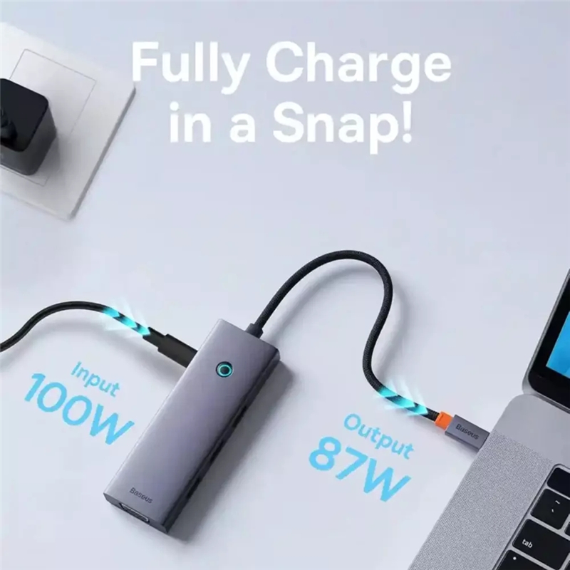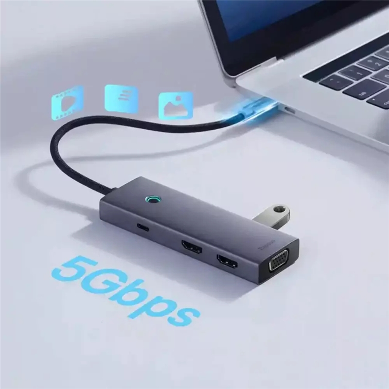 هاب Baseus 7 in 1 Triple-Display Hub با طراحی جمع‌وجور و مناسب خود به راحتی قابل حمل است. این هاب به‌طور خاص برای کاربرانی طراحی شده است که از فضای کاری محدود برخوردار هستند و نیاز دارند که ابزارهایی با ابعاد کوچک و قابلیت‌های فراوان داشته باشند. با ابعاد مناسب، شما می‌توانید این هاب را به راحتی در کیف لپ‌تاپ خود قرار دهید و در هر کجا که نیاز دارید از آن استفاده کنید.