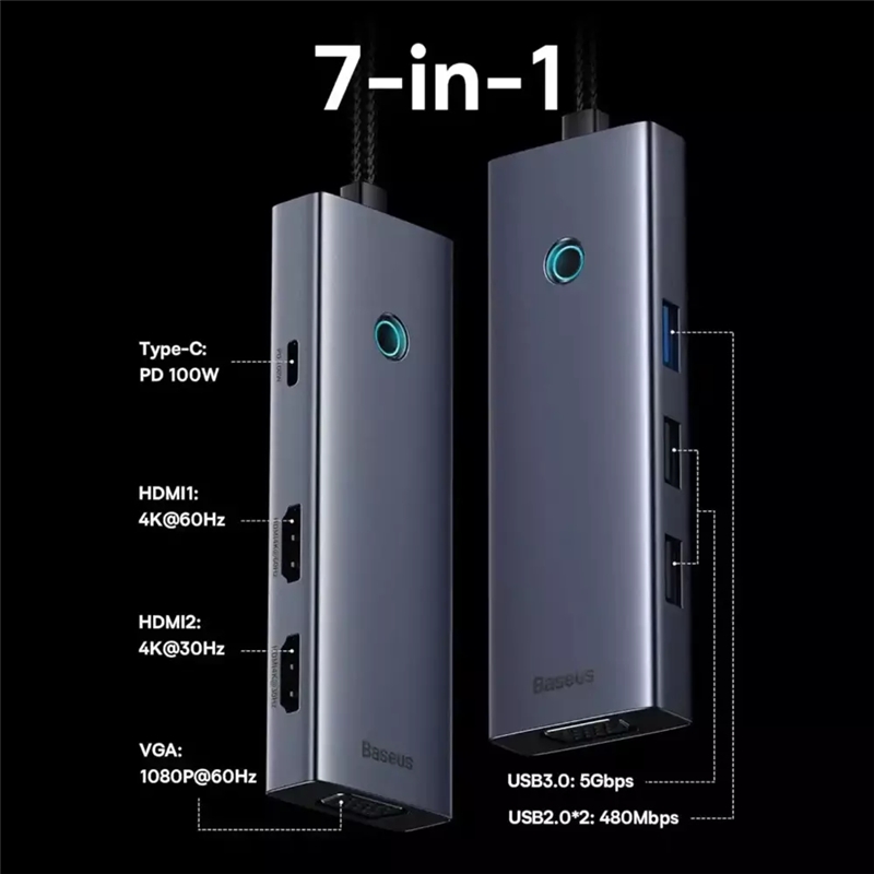 هاب هفت پورت تایپ سی بیسوس Baseus 7 in 1 Triple-Display Hub BS-OH117