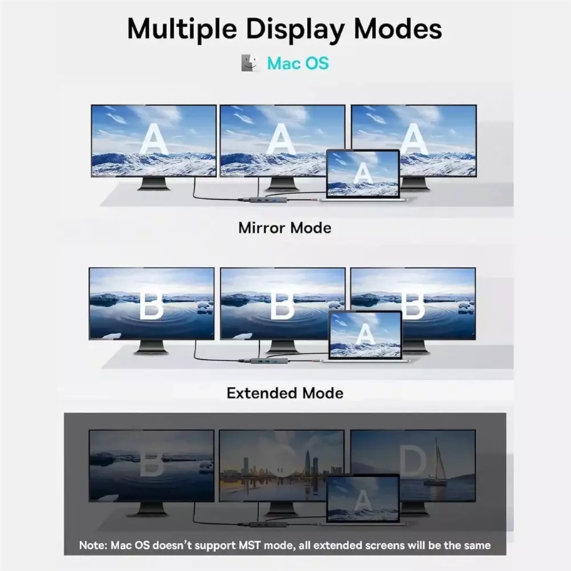 هاب Baseus 7 in 1 Triple-Display Hub BS-OH117 با انواع مختلفی از دستگاه‌ها و سیستم‌عامل‌ها سازگار است. این هاب