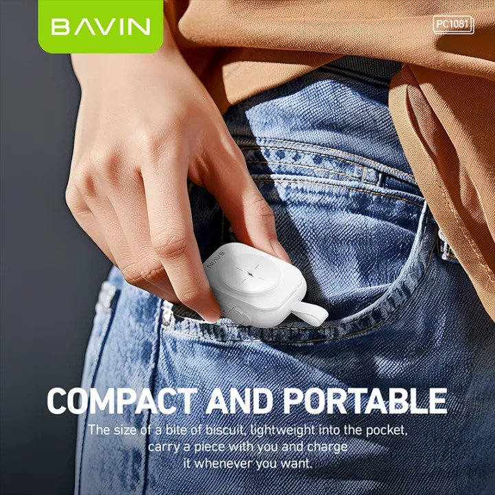 با طراحی باریک و سبک، پاوربانک اپل واچ Bavin PC1081 به راحتی در جیب، کیف یا حتی به همراه بند مخصوص (که در بستهبندی موجود است) حمل میشود. هر کجا که بروید، انرژی همراه شماست!