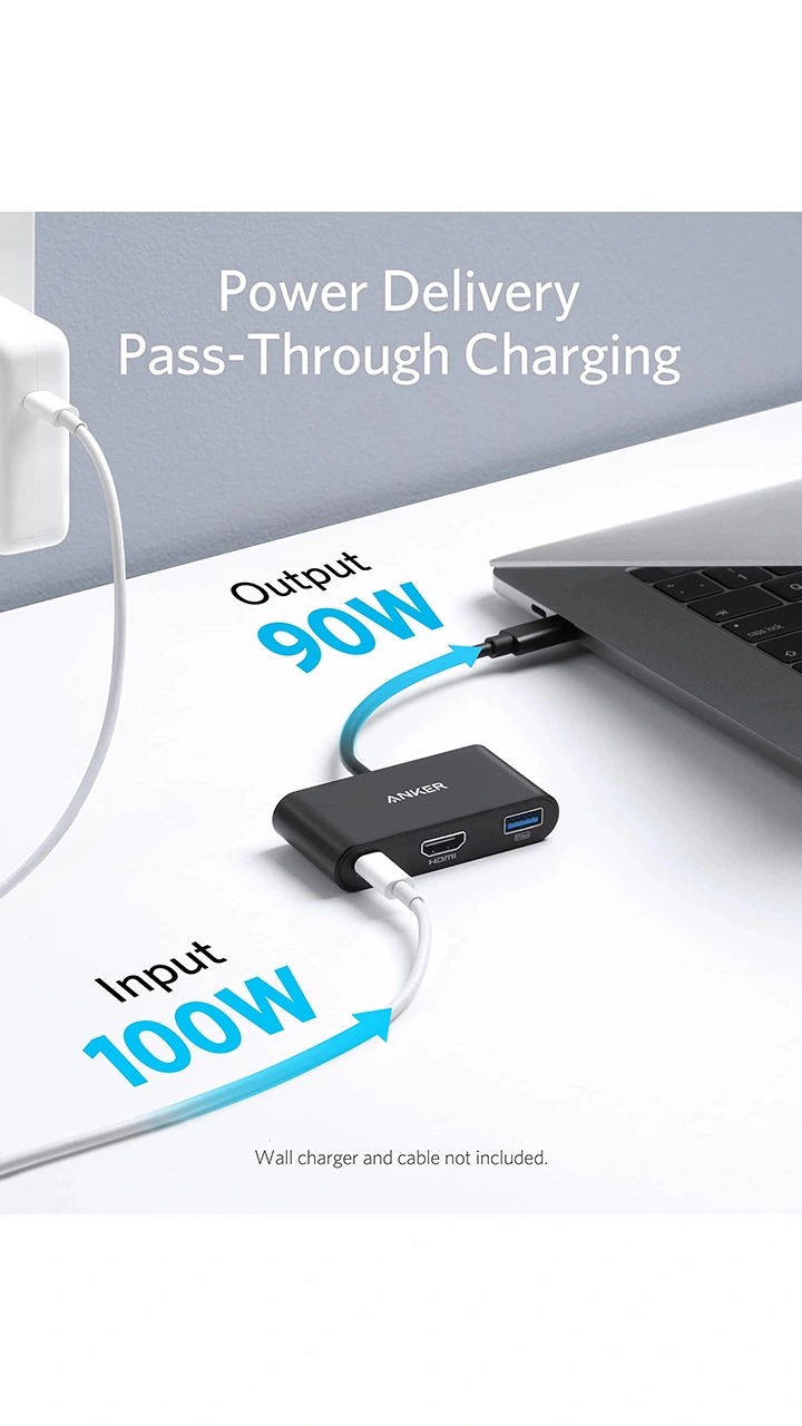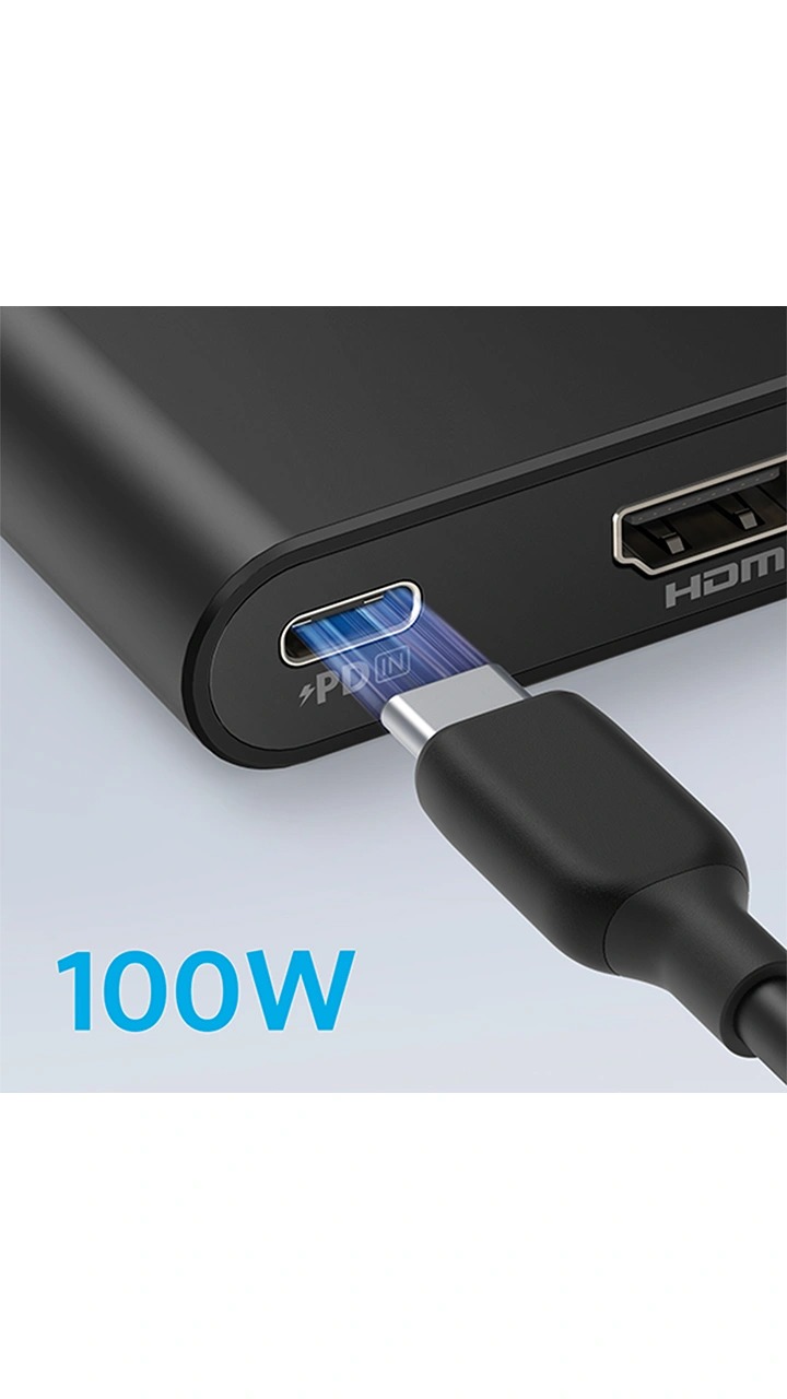 سایر توضیحات- هاب سه کاره: پخش رسانه، انتقال اطلاعات و شارژ - پورت HDMI برای پخش ویدئو تا کیفیت 4K@30Hz - پورت USB-C با توان ورودی 100 وات و خروجی 90 وات - پورت USB-3 با سرعت انتقال داده تا 5 گیگابایت بر ثانیه - پورت USB-3 از شارژ پشتیبانی نمیکند.