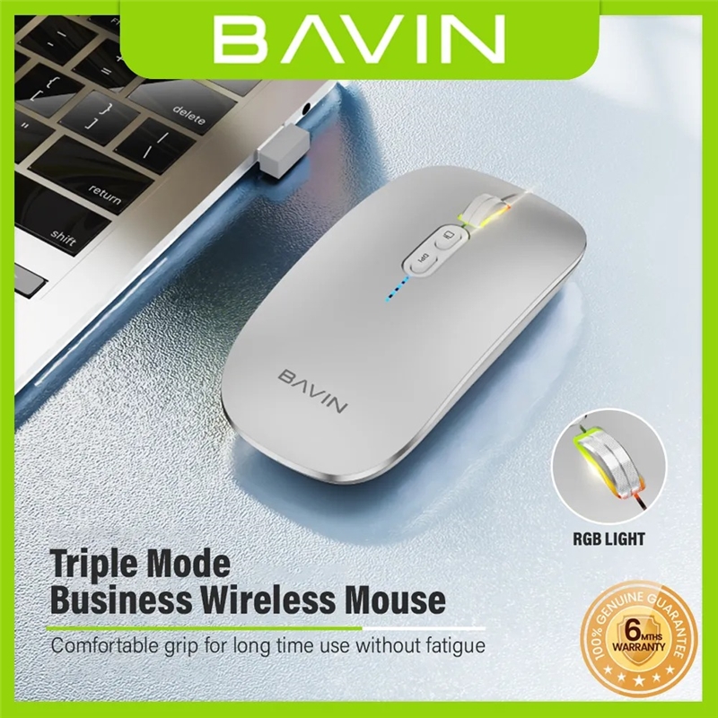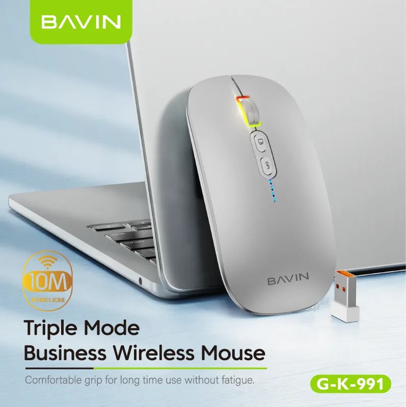 موس باوین Bavin K991 با سه حالت اتصال شامل 2.4G، بلوتوث 5.1 و بلوتوث 5.1 دوگانه، سازگاری بینظیری را با انواع دستگاهها از جمله لپتاپ، تبلت، کامپیوتر و موبایل فراهم میکند. گیرنده بیسیم 2.4G این محصول از تداخل بلوتوث و وایفای جلوگیری کرده و انتقال دادهها را پایدار و روان نگه میدارد.