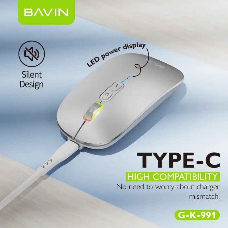 موس سه حالته باوین K-991 با درگاه شارژ Type-C با سازگاری بالا نیز اطمینان میدهد که هیچ نگرانی از بابت تطابق شارژر نخواهید داشت.موس باوین Bavin K991 یک ابزار ایدهآل برای کارهای روزمره و حرفهای است که ترکیبی از فناوری مدرن و راحتی کاربری را ارائه میدهد.