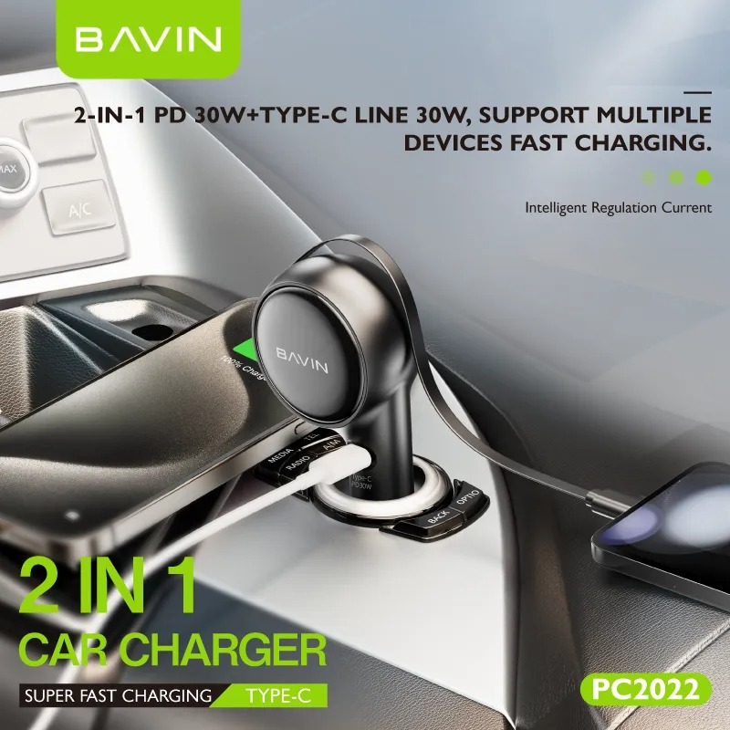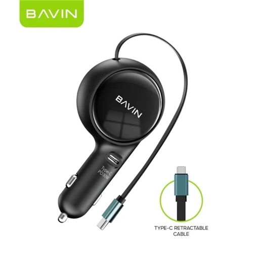 شارژر فندکی فست شارژ باوین BAVIN PC2022 Universal توان 60 وات همراه با کابل متصل جمعشونده