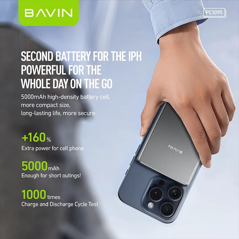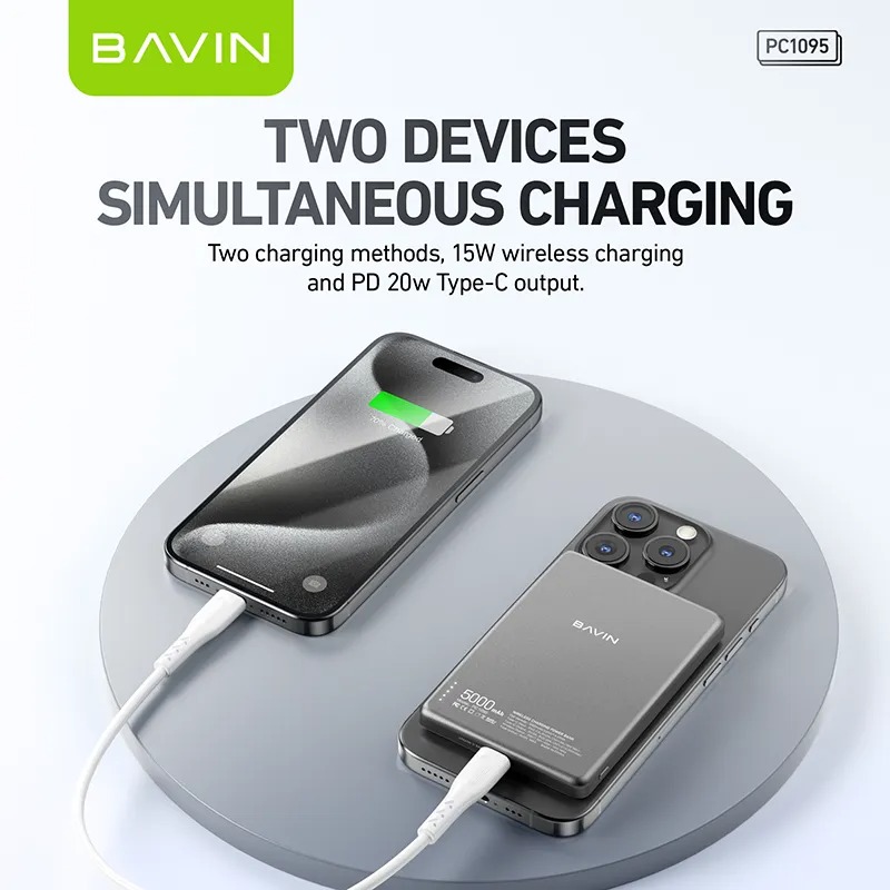 پاوربانک فوق نازک وایرلس 5000 مگنتی باوین Bavin PC1095 Ultra-thin Power Bank توان 15 وات