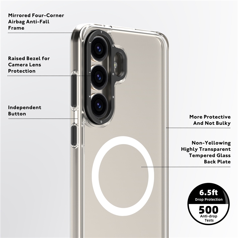 قاب مگسیف برند یانگکیت مدل Gemstone Glass Back + Soft Frame مناسب برای Samsung Galaxy S25 Ultra بسیار مقاوم در برابر ضربه مگسیف مقاوم در برابر زرد شدن