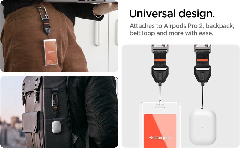 بند نگهدارنده اسپیگن به گونهای طراحی شده که به راحتی به هر کمربند، کولهپشتی یا جاکلیدی متصل شود. این ویژگی باعث میشود تا کاربران بتوانند AirPods Pro 2 خود را به راحتی و با اطمینان حمل کنند. همچنین این بند نگهدارنده قابلیت اتصال به کیف، جیب و یا لباستان را نیز دارد که این امر باعث افزایش انعطافپذیری در استفاده از آن میشود.