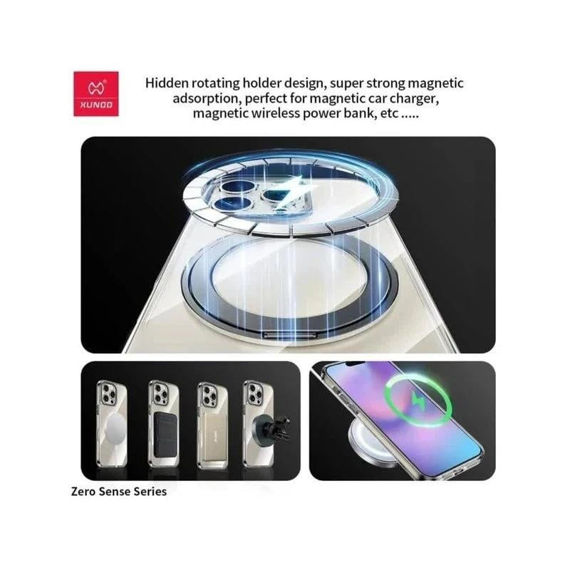 شاید شما هم از جمله کسانی باشید که دوست ندارند ظاهر زیبای گوشی خود را توسط قاب بپوشانند. در این صورت این قاب را به شما پیشنهاد میدهیم. این قاب از نوع شفاف و بی رنگ است و از کیفیت بالایی بهره میبرد. کاور اپیکوی Xundd Zero Sense Magnetic بر خلاف دیگر قابهای شفاف ژلهای به سادگی زرد نمیشود و تا مدت زیادی میتوانید از آن لذت ببرید همچنین در این مدل حلقه مگنتی متشکل از چندین آهن ربای ریز و قدرتمند طراحی و قرار داده شده است تا بتوانید بدون نیاز به خارج کردن گوشی از MagSafe آن جهت شارژ یا اتصال های بدون بی سیم به سادگی و به شکلی عالی استفاده نمایید. همچنین این حلقه با قابلیت تبدیل به استند در زوایای مختلق طراحی شده است تا تجربه کاربری بهتری را برای شما بسازد. سک نکته جالب در خصوص این کاور وجو برچسب هایی است که درون آن قرار دارد و میتوانید آن هارا به سلیقه خود در دایره وسط حلقه قرار دهید و آن را زیبا کنید. مقاومت بالا و مناسبی در برابر هرگونه آسیب و خط و خش دارد و با خیال راحتتری میتوانید از گوشی خود لذت ببرید. نه تنها تغییری در ظاهر و استایل گوشی ایجاد نمیکند، بلکه رنگ آن را هم اصلا تغییر نمی دهد و میتوانید از اصالت گوشی زیبای خود لذت ببرید.پشت این قاب از پلی کربنات ساخته شده که جنسی نسبتا سخت دارد. در نتیجه به خوبی در برابر خط و خش مقاومت میکند و به راحتی آسیب نخواهد دید.استفاده از پلی کربنات برای قاب یک مزیت مهم دیگر هم دارد و آن این است که در اثر گذشت زمان زرد و کدر نمیشود. مشکلی که معمولا برای قابهای ژلهای شفاف پیش میآید و زیبایی آن را از بین میبرد.از مواد و متریالهای باکیفیت در طراحی و ساخت این قاب استفاده شده است. در نتیجه دوام و کیفیت بالایی دارد و میتوانید مدتهای طولانی بدون مشکل از این قاب استفاده کنید.دور تا دور قاب نرم و منعطف است. خیلی راحت میتوانید آن را روی گوشی نصب کنید و یا بردارید. به خوبی دور گوشی فیکس میشود و شل یا لق نیست.این کاور طراحی ظریف و باریکی دارد. به همین دلیل هم گوشی شما را حجیم و سنگین نمیکند. خیلی خوش دست است و به راحتی میتوانید گوشی را در دست کنترل کنید. لبهها دقیقا با لبههای گوشی هماهنگند. جای دوربین و جای دکمهها کاملا مشخص است.اگر به قاب دقت کنید میبینید که گوشههای آن شیار دار و تقویت شده است.