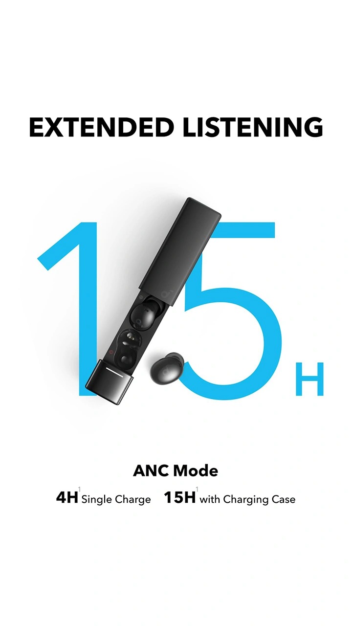 هندزفری بی سیم انکر SOUNDCORE A30i A3958 از قابلیت حذف نویز برخوردار است و کیفیت بالایی برای پخش صدا دارد. در نتیجه اگر قصد دارید از یک هندزفری مناسب برای انجام بازی های موبایلی استفاده کنید، هندزفری بلوتوثی انکر مدل A30i انتخابی مناسب به شمار می رود. این محصول با استفاده از الگوریتم تطبیقی می تواند صداهای خارجی (نویز) را تشخیص داده و آن ها را حذف کند.