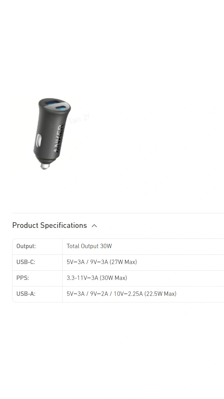 در استفاده هم زمان از هر دو خروجی و شارژ هم زمان دو دستگاه، توان خروجی سوکت USB به اندازه 22.5 وات و توان خروجی سوکت تایپ C به اندازه 30 وات خواهد بود. به همین دلیل مجموع توان خروجی آداپتور فندکی Anker 323 Car Charger A2735 به 52.5 می رسد.