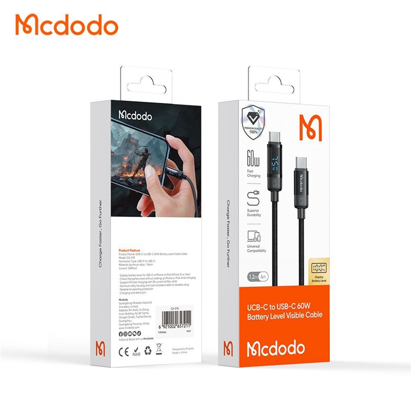 کابل McDodo CA-5780 با طراحی شیک و حرفهای خود، علاوه بر کارایی بالا، از نظر ظاهری نیز جذاب است. این کابل به گونهای طراحی شده که به راحتی در کیف یا جیب شما جای میگیرد و ظاهر مدرنی به میز کار یا محیط شما میبخشد. طراحی جمعوجور و مقاوم این کابل به شما این امکان را میدهد که به راحتی آن را حمل کرده و در هر مکانی استفاده کنید. همچنین، LED نمایشی این کابل به خصوص در مکانهای تاریک، ظاهر زیبایی به آن بخشیده و استفاده از کابل را راحتتر میکند.