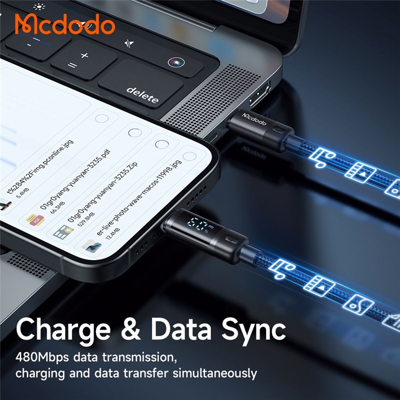 کابل مک دودو CA-5780 با پشتیبانی از تکنولوژی شارژ سریع PD (Power Delivery)، برای شارژ دستگاههای مختلف بسیار کارآمد است.