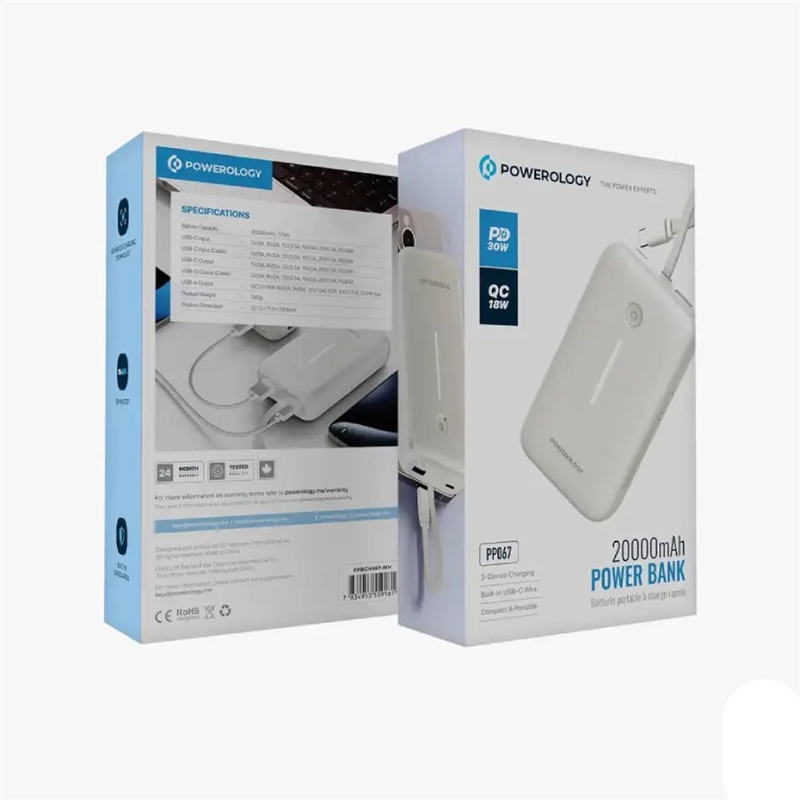 پاوربانک پاورولوژی مدل PPBCHA67 انتخابی عالی برای کاربرانی است که به دنبال یک پاوربانک با ظرفیت بالا، ایمنی پیشرفته و قابلیت شارژ سریع هستند. این محصول برای سفر، کار و استفاده روزمره گزینه‌ای ایده‌آل است.