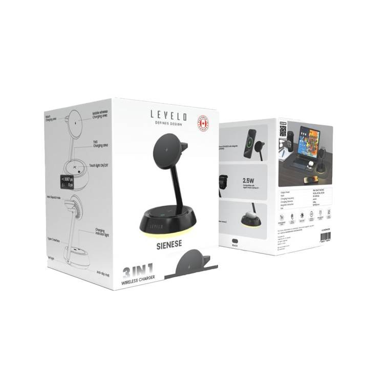 شارژر وایرلس 3 کاره رو میزی لولو Levelo Sienese 3 In 1 Wireless Charger LVLSN31WCBK