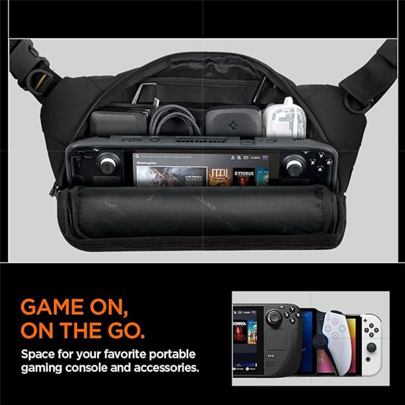 این کیف با ظرفیت ۵٫۵ لیتری دارای جیبهای داخلی متنوعی برای سازماندهی لوازم تکنولوژی و وسایل ضروری شماست. در طراحی آن، یک جیب مخفی برای ردیاب بلوتوثی و جیبهای مجزا برای نگهداری دستگاههای گیمینگ مانند Nintendo Switch OLED، Lenovo Legion Go، Steam Deck، ROG Ally و Sony PS Portal در نظر گرفته شده است.