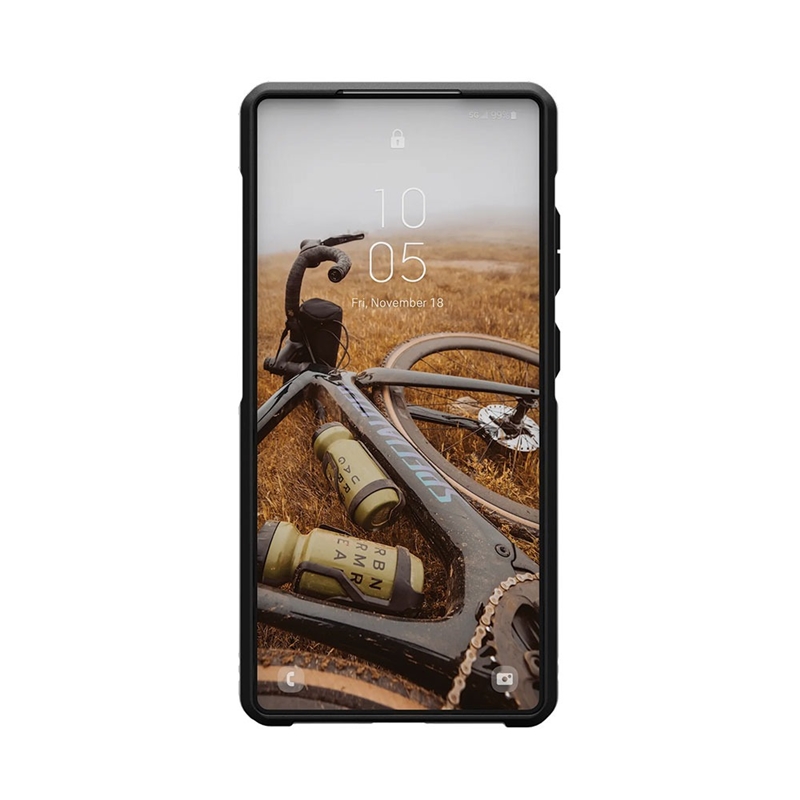 لبههای برجسته برای محافظت بیشتر: قاب UAG دارای لبههای بلند در اطراف صفحه نمایش و دوربین است که از تماس مستقیم با سطوح سخت و ایجاد خط و خش جلوگیری میکند.