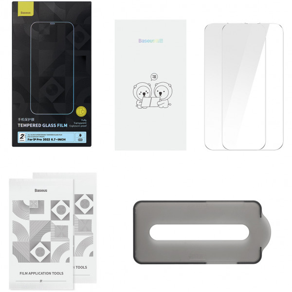پک دوتایی گلس تمام صفحه آیفون بیسوس Baseus Tempered Glass Film Iphone 14 Pro max SGBL210302