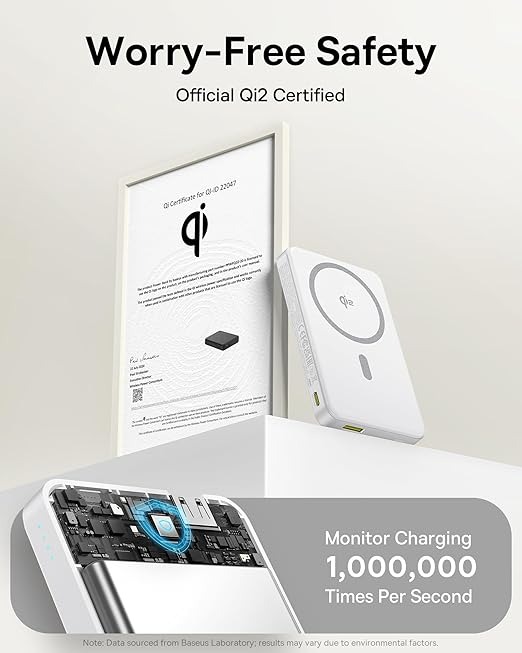 استاندارد Qi2 15 وات برق برای شارژ بیسیم طراحی ارگونومیک، فوق سبک و ابعاد جمع و جور تراشه دیجیتال هوشمند شارژ ایمن را تضمین می کند فرقی نمیکند از آیفون، سامسونگ یا گوشیهای هوشمند دیگری استفاده کنید