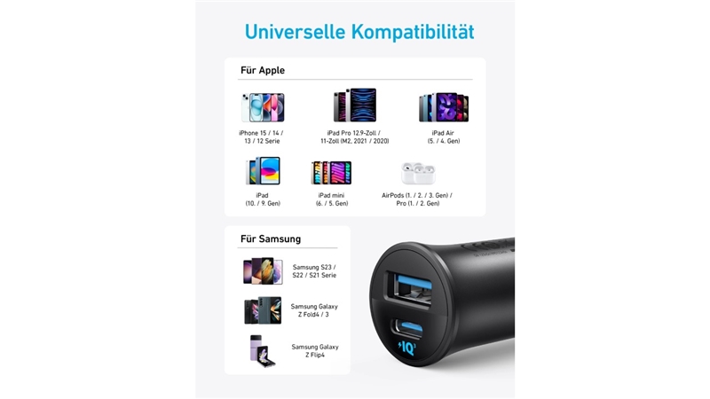 شارژر فندکی 30 وات 2 پورت انکر مدل A2741 دارای یک درگاه USB-C است که سرعت شارژ بالایی را برای دستگاه های سازگار با USB-C فراهم می کند. این درگاه مخصوص شارژ سریع است و دستگاه هایی مانند آیفون 15، 15 پرو و سایر گوشی های هوشمند جدید را به سرعت شارژ می کند.