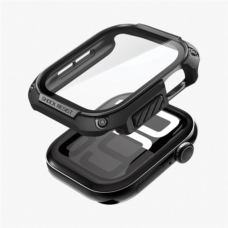 Spigen Tough Armor یکی از مقاومترین گاردهای محافظ برای اپل واچ ۱۰ (۴۶mm – 2024) است که از ترکیب پلیکربنات (PC) و TPU ساخته شده است. این قاب دو لایه دارای محافظ صفحه نمایش شیشهای ۹H است که از نمایشگر ساعت شما در برابر ضربه، خط و خش و سقوط ناگهانی محافظت میکند. اگر به دنبال محافظی سختجان و مقاوم برای ساعت هوشمند خود هستید، Tough Armor بهترین انتخاب خواهد بود.