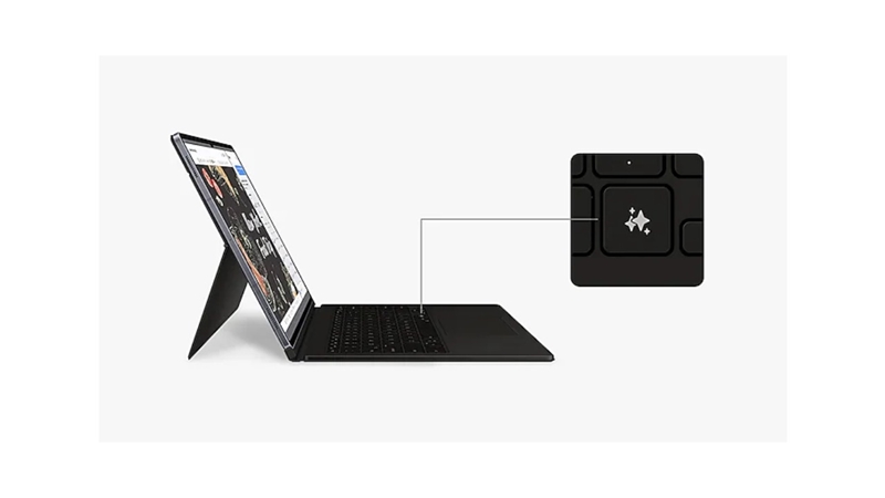 یکی از مهم ترین ویژگی های کیف کلاسوری کیبورد دار تبلت سامسونگ مدل AI Key EF-DX925 مناسب Galaxy Tab S10 Ultra | S9 Ultra دکمه هوش مصنوعی آن است. بر روی این محصول یک عدد کلید مخصوص قرار گرفته که با استفاده از آن می توانید دسترسی سریعی به هوش مصنوعی داشته باشید. کار با این کلید بسیار آسان است. شما می توانید روی این کلید یک ضربه بزنید و سپس سوالات خود را تایپ کنید یا به صورت صوت بگویید. پس از آن Bixby یا Gemini فعال می شوند وبه درخواست های شما پاسخ می دهند. البته دقت داشته باشید که برای کار با این کلید حتما باید به اینترنت وصل باشید و وارد حساب گوگل یا ایمیل خود شده باشید.