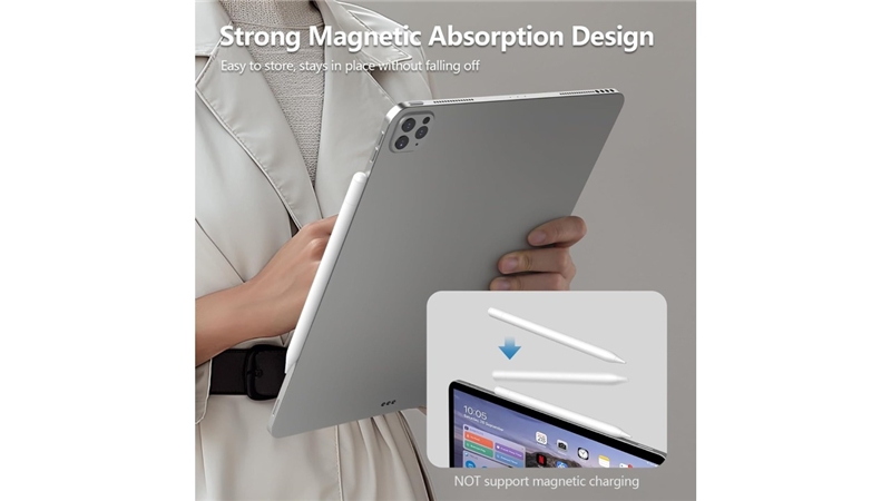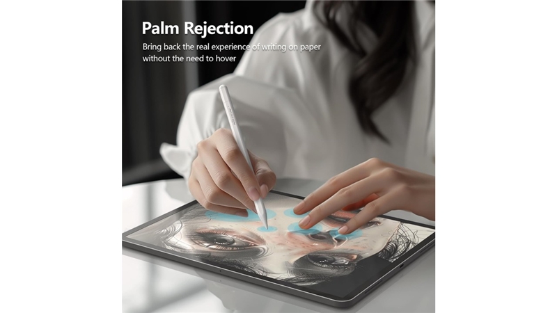 قلم دارای قابلیت Palm Rejection است که هنگام قرار گرفتن کف دست روی صفحه، از ثبت لمس های ناخواسته جلوگیری می کند. این ویژگی بسیار مفید برای افرادی است که برای مدت طولانی از تبلت استفاده می کنند و نیاز به راحتی بیشتری در کار دارند. قلم به صورت مغناطیسی به کناره آیپد متصل می شود و از افتادن یا گم شدن آن جلوگیری می کند.
