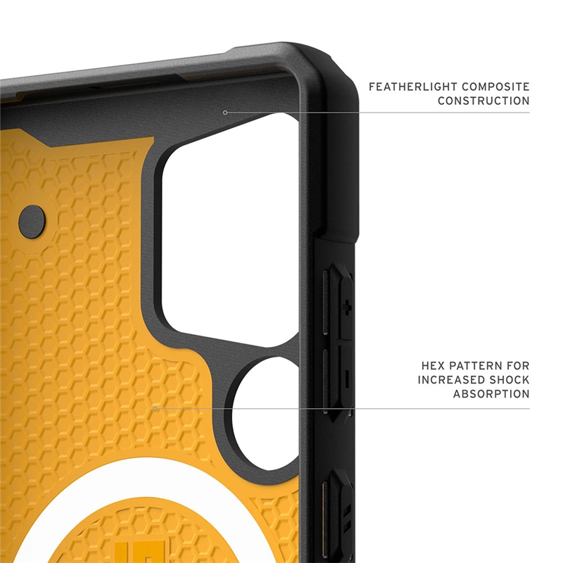 قاب UAG Pathfinder MS طراحی‌شده برای Galaxy S25 Ultra، یک گزینه ایده‌آل برای محافظت مقاوم و ماجراجویی است. این قاب با ساختار زرهی فوق‌سبک، فریم ضدضربه، فناوری جذب ضربه Hex Pattern Core، و سازگاری کامل با مگ‌سیف و شارژ بی‌سیم، ایمنی و کارایی گوشی شما را تضمین می‌کند.