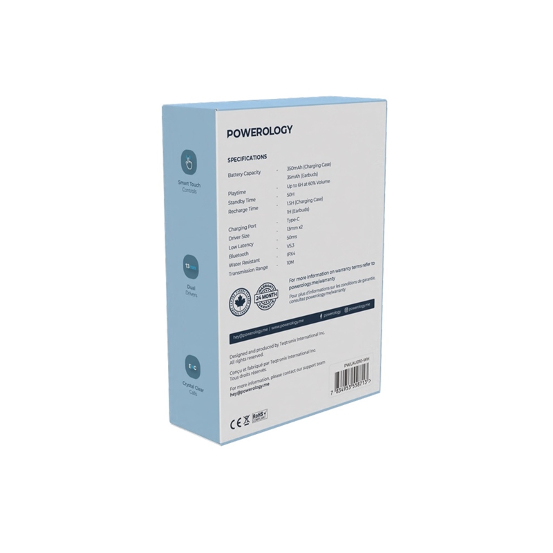 هندزفری بلوتوث پاورولوژی Powerology Hybrid ANC+ECN True Wireless buds PWLAU010