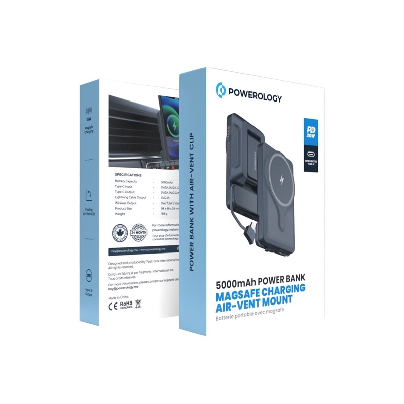 پاوربانک وایرلس و هولدر دریچه کولری پاورولوژی Powerology 5000mAh Air-Vnet Power Bank PPBCHA32