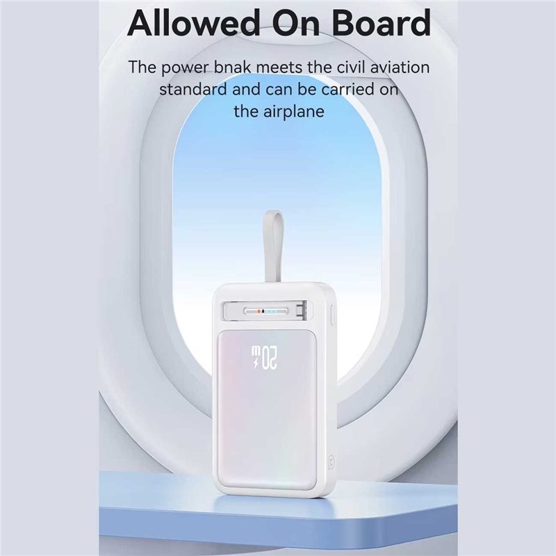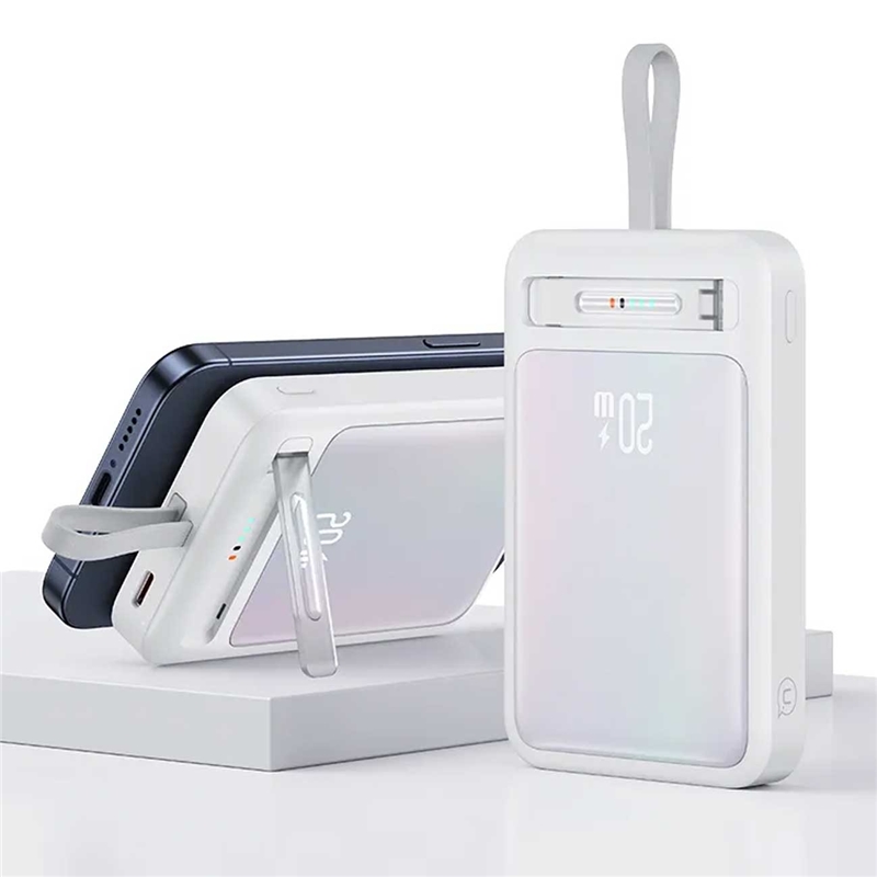 پاور بانک USAMS CD219 مجهز به کابل Type-C به Lightning PD –دیگر نیازی به خرید کابل جداگانه ندارید! این پاوربانک یک کابل اختصاصی برای شارژ سریع آیفون دارد.