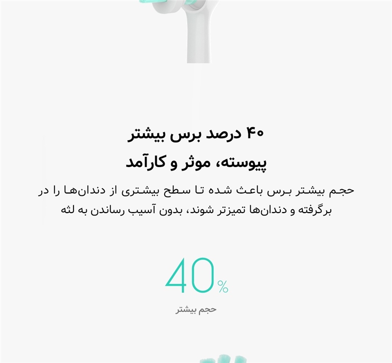 مسواک برقی شیائومی T300 دارای سه حالت استاندارد، نرم و سفارشی برای پاسخگویی به نیازهای مختلف کاربران.از لحاظ علمی زمان مسواک زدن دندان ها حدود دو دقیقه بوده و هر ناحیه از دهان به صورت چهار قسمت جداگانه باید حدود 30 ثانیه تمیز شود.تعداد برسها 40٪ افزایش یافته که پوشش بهتری را برای تمیزکاری فراهم میکند.