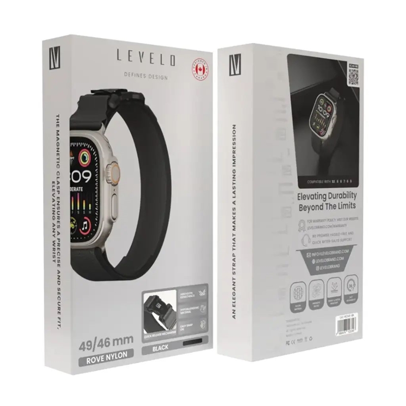 بند اپل واچ 44/49 Levelo Rove Nylon Watch Strap With Metal Buckle