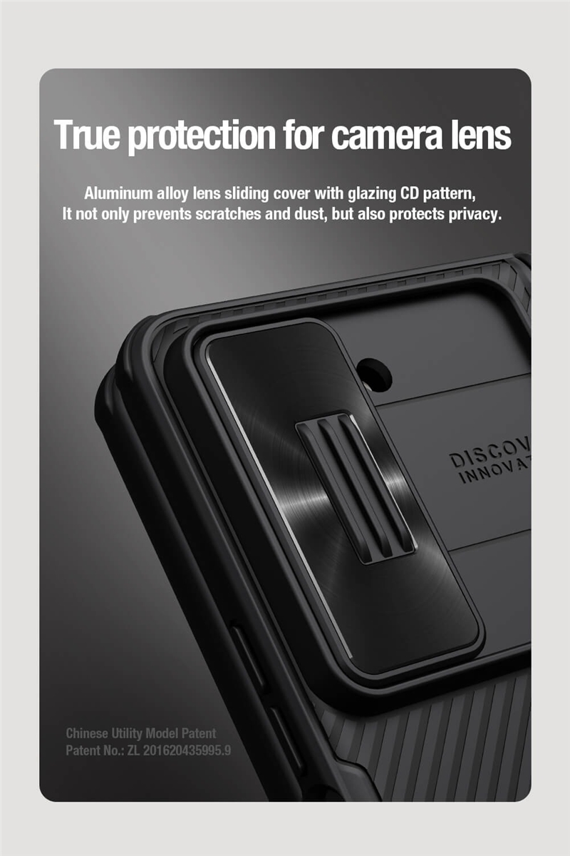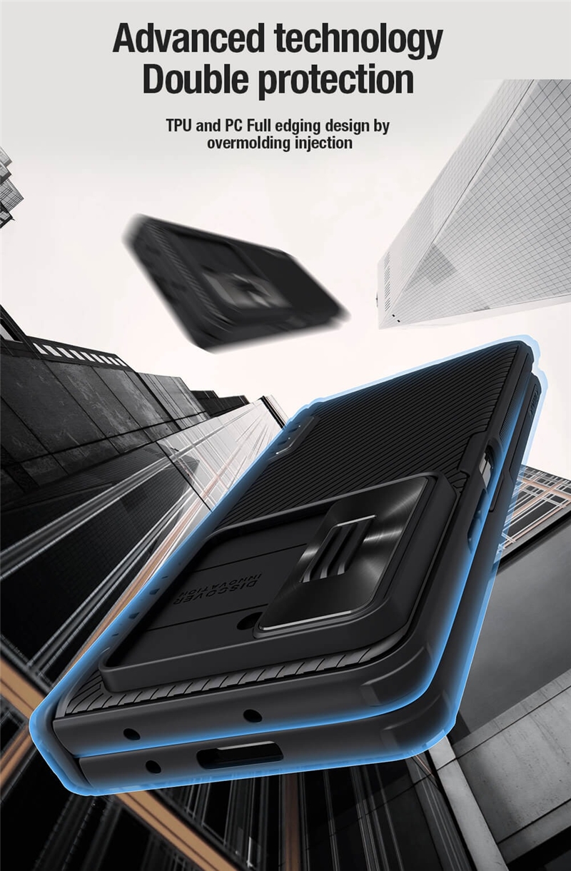 با این قاب زیبا و هیجان‌انگیز هم از بدنه و هم از دوربین گوشی‌تان به بهترین شکل ممکن مراقبت می‌کنید.کاور نیلکین مدل CamShield یک محافظ کشویی دارد که جلو دوربین گوشی قرار می‌گیرد و اجازه نمی‌دهد آسیبی به دوربین این گوشی برسد.دوربین گوشی کیفیت بسیار بالایی دارد.در نتیجه باید مراقب باشید تا هیچ خط و خراشی روی دوربین گوشی نیفتد چون کیفیت آن به شدت افت می‌کند.با کاور نیلکینCamShield نگران آسیب دیدن دوربین گوشی‌تان نخواهید بود.چون یک سپر محافظتی قوی دارد که به شکل کشویی روی دوربین قرار می‌گیرد و مواقعی که به دوربین نیاز دارید می‌توانید کشو‌ آن را کنار بکشید و استفاده کنید.کاور نیلکین مدلCamShield از جنس پلی کربنات ساخته شده است.یک متریال سخت که قدرت محافظتی بالایی دارد.در برابر ضربه و خط و خراش مقاومت بالایی دارد.رنگ‌بندی مختلفی هم دارد و می‌توانید متناسب با سلیقه‌تان بهترین گزینه را در زمان خرید لوازم جانبی بهترین گزینه را انتخاب کنید.کاور نیلکین مدلCamShield ترکیبی قدرتمند از طراحی کلاسیک و مدرن به همراه قدرت محافظتی بالاست.کاور نیلکین مدل CamShield یک پوشش کشویی دارد که روی دوربین اسلاید می‌شود و دوربین گوشی را به طور کامل پوشش می‌دهد.این قاب از پلی کربنات که هم مقاومت بالایی دارد و هم با محیط زیست سازگار است ساخته شده است. کاملا ضد خراش است و حتی در برخورد با اجسام نوک‌تیز هم با قدرت عمل می‌کند.کاور نیلکین مدل CamShield بسیار ظریف و خوش‌ساخت است.طراحی جذابی دارد و به گوشی یک حالت شیک و جذاب می‌بخشد همچنین این قاب در برابر اثر انگشت و ذرات چربی و لکه مقاوم است. اثر انگشت روی سطح گوشی نمی‌ماند و چون به صورت گیردار طراحی شده از داخل دست نمی‌لغزد و نگران افتادن یا لیز خوردن آن از دست‌تان نیستید.کاور نیلکین مدلCamShield کاملا متناسب با ابعاد گوشی طراحی شده است و به هیچوجه جلو دوربین، دکمه‌ها و یا پورت و اسپیکرهای گوشی را نمی‌گیرد.کاور نیلکین CamShield ظریف و خوش‌دست است. با تکنولوژی‌های مدرن طراحی شده است و ظرافت‌های زیادی دارد. لبه‌ها و قسمت‌های پشتی کاور گیردار هستند. از دست‌تان نمی‌لغزد و وقتی در مترو یا خیابان هستید بدون نگرانی از گوشی‌تان استفاده می‌کنید.این قاب را روی گوشی‌تان نصب کنید و از ترکیب تکنولوژی، طراحی و جذابیت بالای آن لذت ببرید.