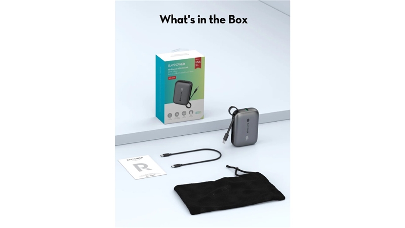 پاوربانک راوپاور مدل RP-PB1224 همراه با کابل USB-C به USB-C و کیف مسافرتی در جعبه موجود است. این محتویات به شما این امکان را می دهند که به راحتی و بدون نیاز به تهیه تجهیزات اضافی، دستگاه خود را به هر جایی که می خواهید ببرید. دفترچه راهنما نیز به شما کمک می کند تا از تمامی ویژگی ها و قابلیت های این دستگاه بهره برداری کنید.